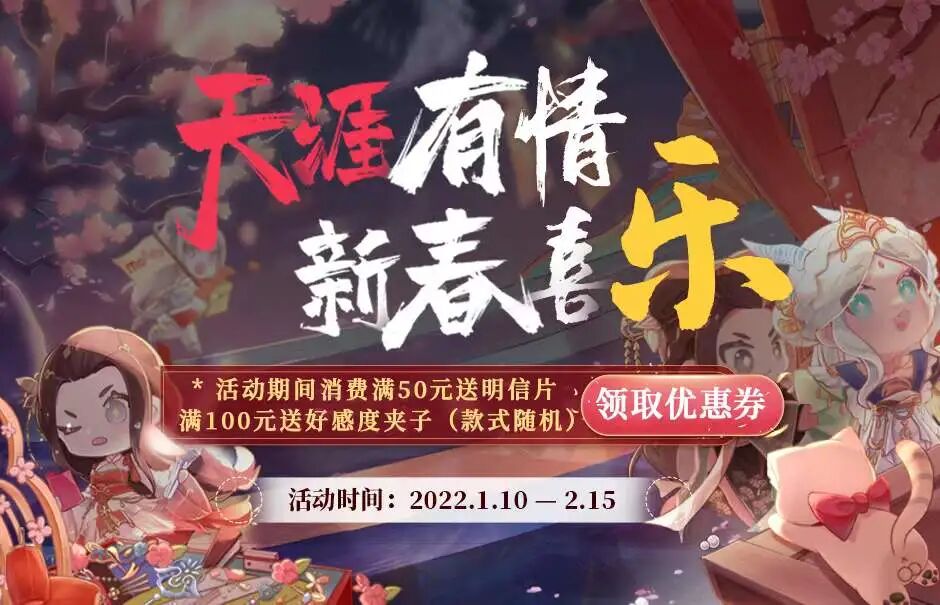 新品已至,福利也要跟上!即日起至2月15号,消费满50元赠送明信片,满100元赠送好感度NPC亚克力夹子一个(赠品可叠加),更有满50元减5元的优惠活动!