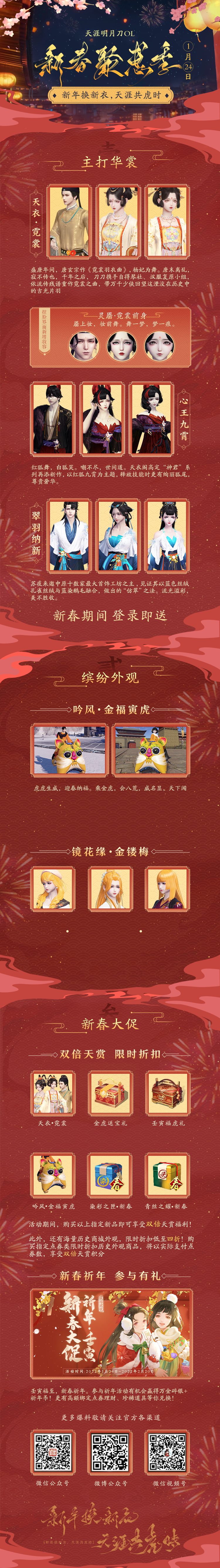 寅虎威风大礼包:大年初一(2月1日-2月14日)登录即领,精美外观全民普赠!碎银染料拿不停!登录即领新年时装、碎银、染料等丰厚好礼。祝少侠顺顺利利,虎年大吉!