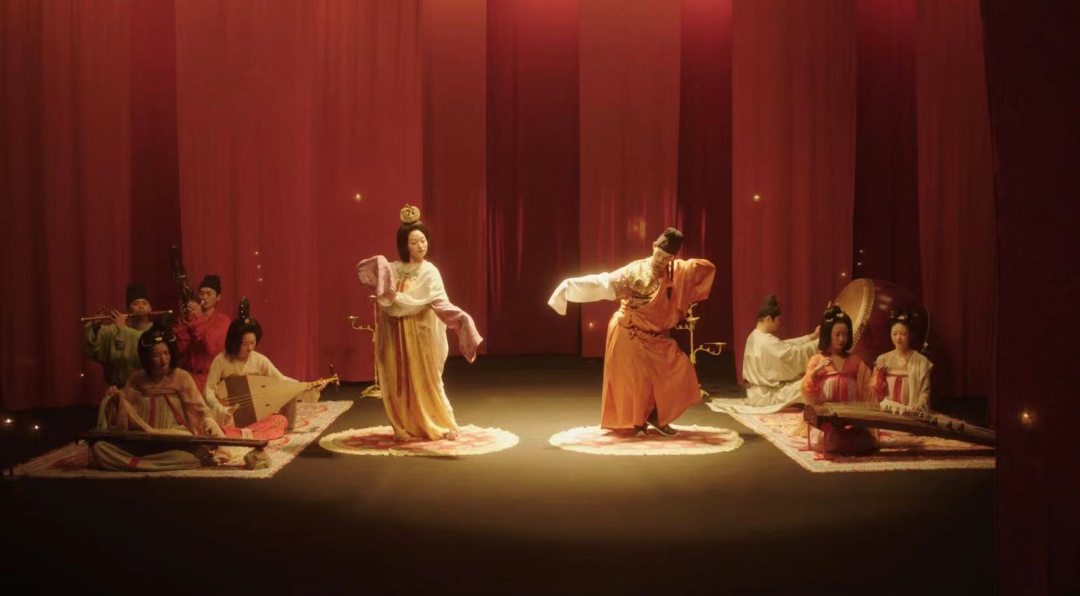 千年之后,“自得琴社”依姜夔传世残谱,再理宫商,重整繁弦,新作《霓裳惊梦》一曲;“装束复原团队”制玄宗、杨妃、后主与周后服饰,琴筝琵琶,弦上相逐,笛飞鼓跃,乐舞相合。