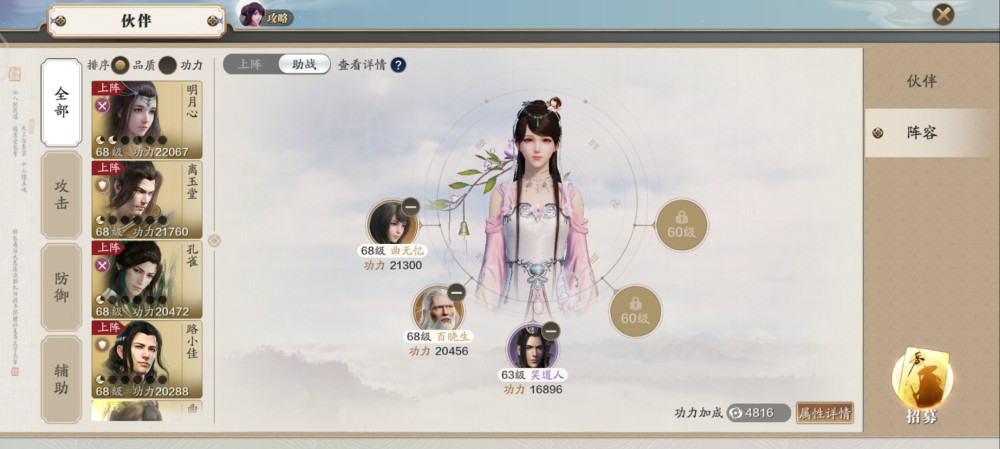 成就:记得看看关键成就有属性丹 一次三十二点,有空的时候一定要去做。世界上有很多喊完成副本成就的,建议看到就进组,一般都会过,这个加战力很明显。