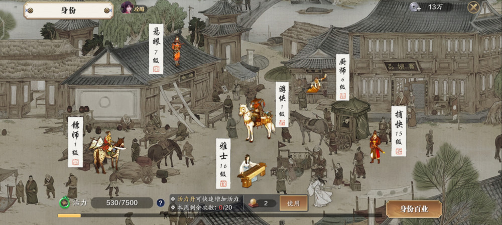 如果说为了赚钱,身份个人建议拉镖 ,去世界找十四级镖师跟着混,据说一周把活力丹磕完加上每天系统自己送的你,应该是可以到2w2(全白,建议前期银两最后买万流归宗。本人奶妈所以选择了弹琴和厨师,请无视捕快吧,前期不知道怎么玩搞的,现在后悔了。