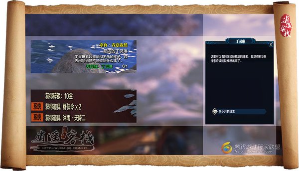 每天完成线索任务均可获得:10金碎银、群侠令*2、沐雨·天降二,依然惯例,在5集齐五条线索帮助丁灵琳解惑后,应当会获得奖励更为可观的礼包。