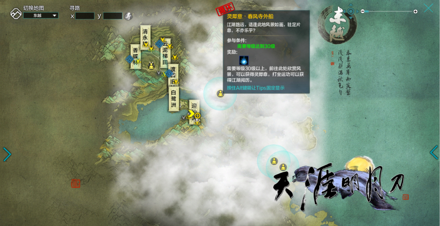 天刀的主线任务并不是每一级都有的,当你的主线任务做完时,其他游戏肯定是副本或者刷怪,在天刀你还可以有其他选择如见闻、隐藏任务、修行、挖宝、抓宠物等,如果你没有任务升级时,请点击M键打开地图,黄色的箭头标识区就是见闻或者隐藏任务,打坐的那个小人则表示你可以去那里修行可以获得修为奖励的,当然这些都是有时间限制的,有的是30分钟一刷新,有的则需要先与其他NPC交谈或者是符合要求的天气情况下才能触发,而打坐修行每个地点大约是两分钟的时间,到点请换下一个地方。这两个都将会获得经验或者其他的奖励。挖宝和抓宠物可以充当游戏中的娱乐,详细的操作方法当你的角色达到要求后系统会通过小窗口视频解说的,不用担心不会玩。这样多种玩法结合相信你的游戏世界是不会无聊的。
