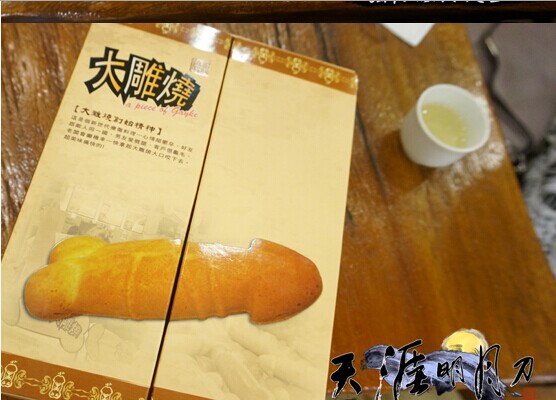 有一种创意甜品店推出名为大雕烧的小吃,形状像男性生殖器,上市1周在网路引发热烈讨论每支售价50元,长约18公分。大雕烧店长大象说,会以男性生殖器形状来做蛋糕是因很多人会碰到男友劈腿等情形。大雕烧与凤梨酥还有鸡蛋糕,如果玩家自己想吃,可以去西门町附近买金蛋糕,如果想带回去,可以去九份等地方买凤梨酥。