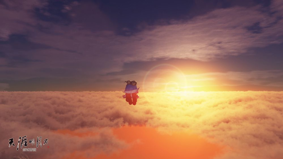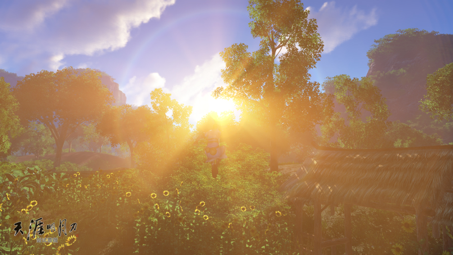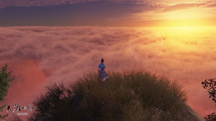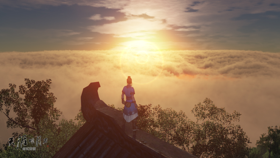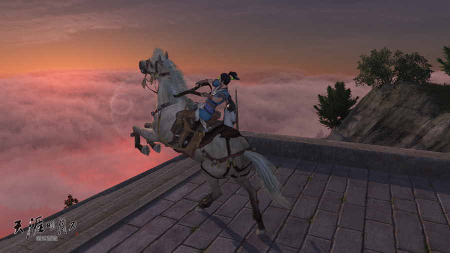 飞云逐月下,这张图片竟然有单反相机的效果,无意间,竟然发现了《天刀》的又一卖点。