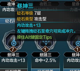 这是同等级的三角砭石。同样的等级,内功的只能加13点,而外功就有26点。相对而言,堆外功是要比内功好堆很多,而且性价比也要高些~