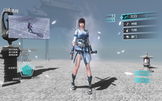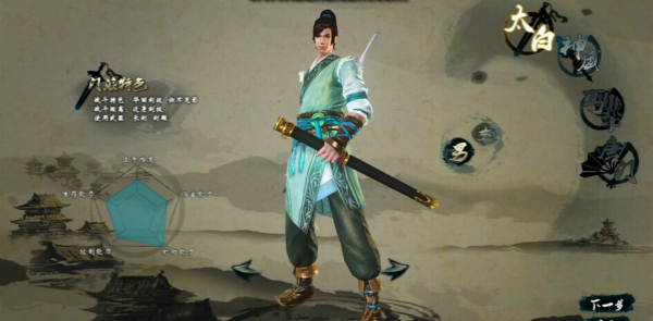 第二次测试的时候,整体界面配合宣传采用了“次时代”网游清新风格调。与之相应的是游戏中UI,官网也在第二次测试之前改为了此风格并且延续到今天。在玩家对于中国水墨风出现审美疲劳的时候,此界面让玩家有一种次时代SAO的清新感。唯一美中不足的,是创建角色背景的单一。玩家在初次接触到这款游戏的时候,如何在创建角色的时候首先吸引玩家并且传达出当前门派的特色?