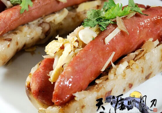 中国**美食大肠包小肠的糯米肠、香肠,通常都先经过炭烤,而糯米肠切开后,也会再涂抹酱油膏等酱料,这是中国**1990年代兴起的一种特殊小吃,说穿了很简单,就是将体积较大的糯米肠切开后,再夹住体积较小的台式香肠,即成为“大肠包小肠”,与美国的热狗有异曲同工之妙。